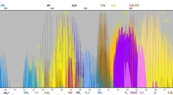 絕大部分氣體都有光譜吸收,但由于氣體的分子結構不同,有的氣體吸收譜線多,有的氣體吸收強度大,而且吸收波長也不一樣。光譜法就成為一種廣泛應用的氣體檢測方法。