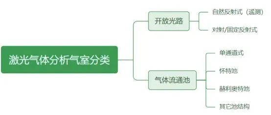 由于激光擁有很高的調制頻率,同時激光芯片作為近似的點光源,可以實現高度平行的平行光束,因此激光氣體分析可以實現開放光路和氣體流通池兩種方式,具體分類如圖所示。